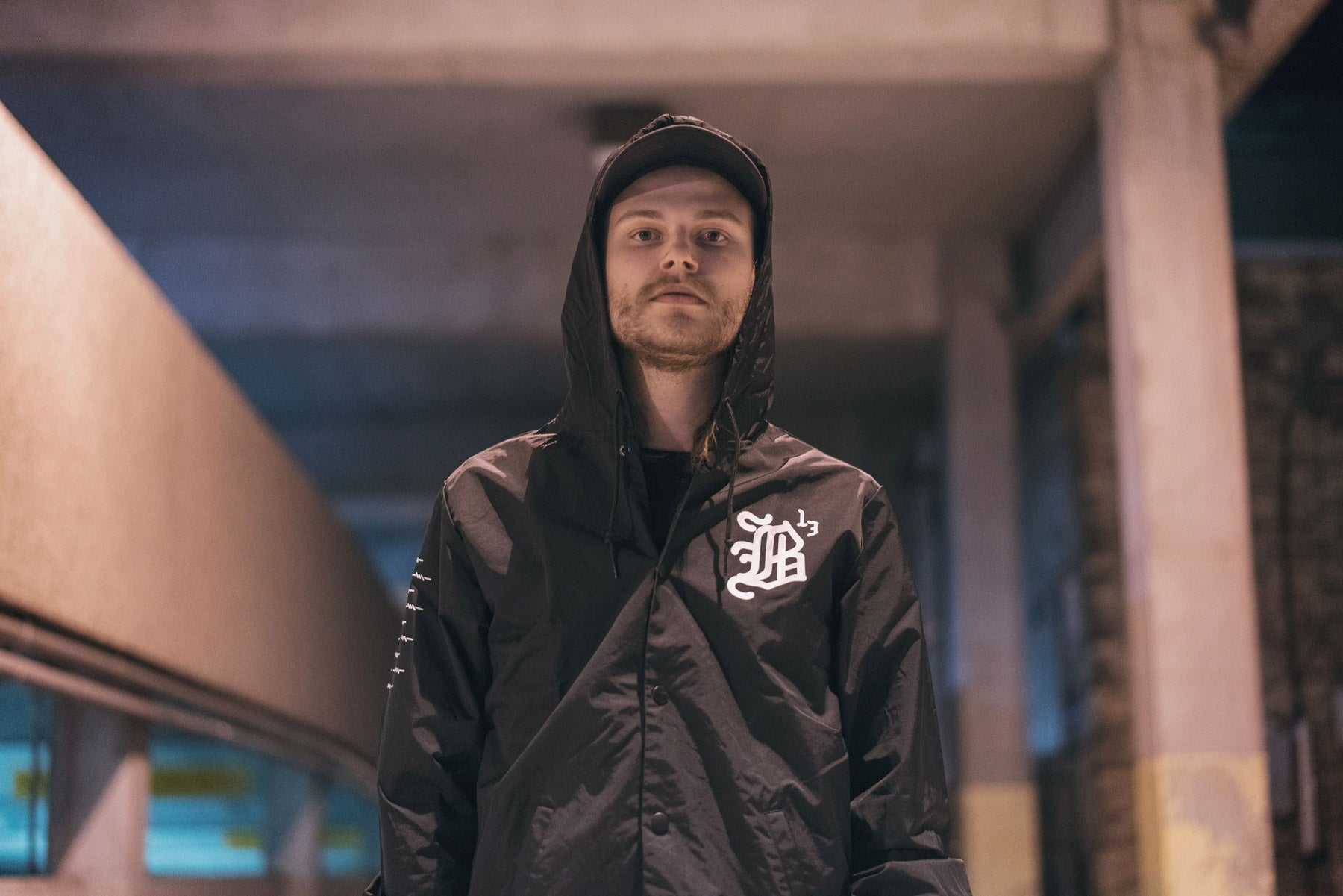 "B13" design on left chest in white / Barbed wire graphic in white on right sleeve / Waterproof nylon fabric / Black metal snap closures / 100% Nylon / Imported